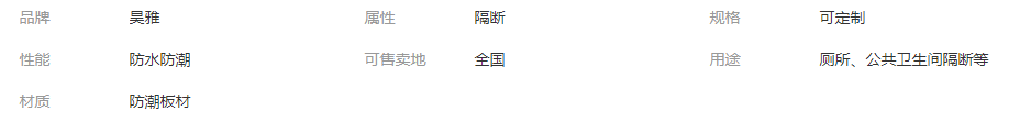 這類材料的衛(wèi)生間隔斷除了能防水外還有其它諸多優(yōu)點。如質(zhì)輕、節(jié)能、易于安裝、維護及可回收性強;強度高、剛度好、不易變形、承載大,即使受到外界的力量的沖擊,亦能保持其形狀不易發(fā)生改變;良好的隔音、保溫、隔熱、防潮、防火效果、無毒、環(huán)保等。