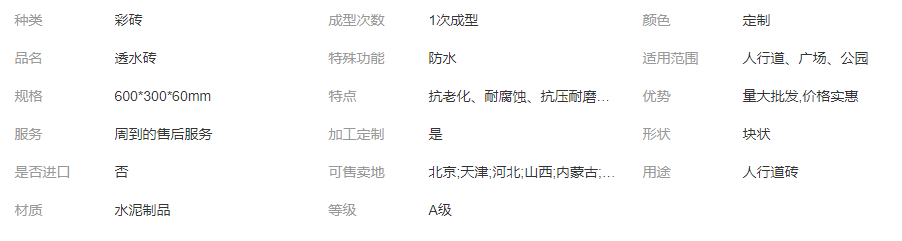 長(zhǎng)期供應(yīng)水泥磚透水磚 規(guī)格齊全 1次成型 人行道、廣場(chǎng)、公園 塊狀